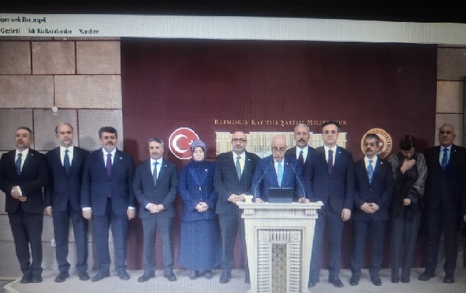 Deprem bölgesi Ak Parti Milletvekilleri Türkiye Büyük Millet Meclisi’nde bir araya gelerek ortak Basın Toplantısı yaptılar.  Cumhurbaşkanımız 455 bininci konutu teslim ederken, Özgür ÖZEL‘in takımının yönettiği belediyeler de 5 tane de olsa konut yapsalardı denilen toplantıda, CHP için;  bir çeşme de olsa yapsalardı, o da kabulümüzdü sözleri dikkat çekti..