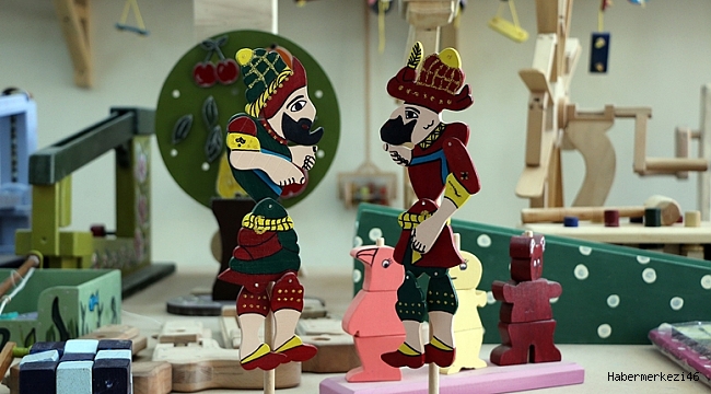 Kahramanmaraş Büyükşehir Belediyesi bünyesinde hizmet vermekte olan Maraş Oyuncakları ve Osmanlı Çarıkları Atölyesi’nde kurs gören kursiyerler ahşaptan çocuklar için oyuncak üretiyorlar.
