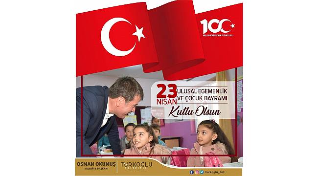 Türkoğlu Belediye Başkanı Osman Okumuş, 23 Nisan Ulusal Egemenlik ve Çocuk Bayramı dolayısıyla bir mesaj yayımladı.
