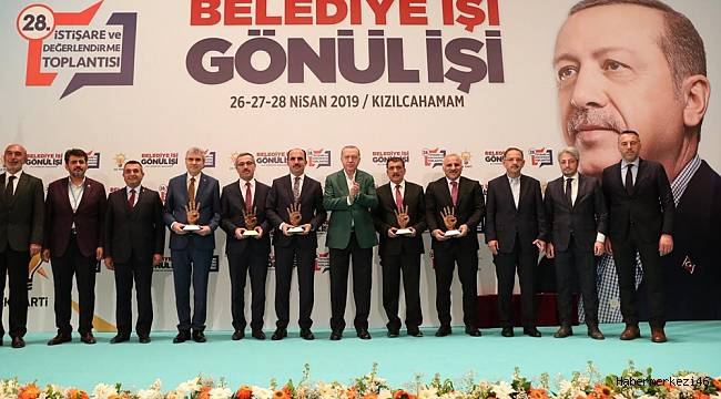 AK Parti’nin Kızılcahamam’da gerçekleştirilen 28. İstişare ve Değerlendirme Toplantısı’nda Cumhurbaşkanı Erdoğan, 31 Mart Mahalli İdareler Seçimlerinde en çok oy alan büyükşehir, il ilçe ve belde belediye başkanlarına ödül verdi.