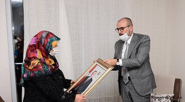 Mahir Ünal, Mukadder Öksüz'e Cumhurbaşkanı Recep Tayyip Erdoğan'ın resminin bulunduğu bir tablo hediye etti.