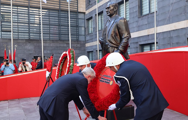 Cumhuriyet’in ilanının 102. yıl dönümü dolayısıyla düzenlenen kutlama etkinlikleri Atatürk Anıtı’na çelenk sunma töreniyle başladı. İl Emniyet Müdürlüğü bahçesinde gerçekleştirilen törende; şehir protokolü, kamu kurum ve kuruluş, siyasi parti ve sivil toplum kuruluşu temsilcileri yer aldı.