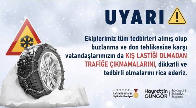 Yapılan uyarıda, “Aşırı soğuk hava ve yoğun kar yağışı nedeniyle vatandaşlarımızın trafikte yaşanabilecek aksamalara karşı tedbirli olmaları, kış lastiği ve zincir gibi ekipmanlar olmadan trafiğe çıkmamaları, mümkün olduğu kadar özel araçlar yerine toplu ulaşım araçlarını tercih etmeleri; çığ tehlikesi ve zirai don gibi olumsuzluklara karşı dikkatli ve tedbirli olmaları gerekmektedir” ifadeleri kaydedildi.
