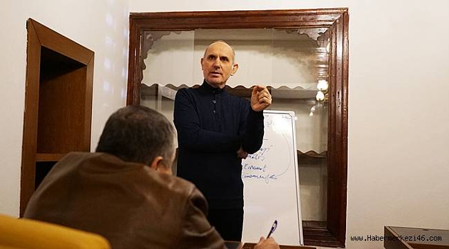 Dedeoğlu Konağı’nda düzenlenen Sezai Karakoç Okumaları kursunda Büyükşehir Belediyesi Genel Sekreteri Dr. Rüstem Keleş tarafından kursiyerlere; Diriliş Şairi Sezai Karakoç’un hayatı, yazım serüveni ve Türk edebiyatına katkıları gibi pek çok konuda bilgiler aktarılıyor. Diriliş Sanat Merkezi’nin ilk döneminde son haftaya girilirken kursiyerler, eğitimlerin kişisel gelişimlerine ve sosyalleşmelerine büyük katkı sağladığını belirterek Büyükşehir Belediye Başkanı Hayrettin Güngör’e teşekkür etti.