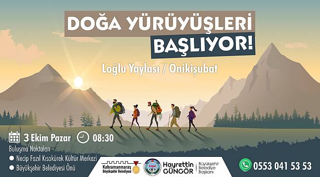 Kahramanmaraş Büyükşehir Belediyesi, doğaseverleri buluşturduğu yürüyüş etkinliklerinin ikincisine başlıyor. “Doğa Yürüyüşleri” adı verilen etkinliklerin ilki Göksun’un Cödden Deresi’nde yer alan Payamburnu mevkiinde gerçekleştirilmişti. Düzenlenecek ikinci etkinlikte ise adres Onikişubat ilçesi “Loğlu Yaylası” olacak. Toplamda 10 kilometrelik parkurun kat edileceği yürüyüşte, yaylanın eşsiz güzellikleri görülebilecek.