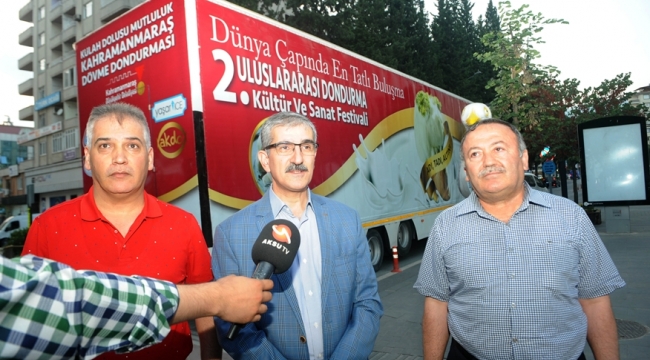 Dondurma Tırının Osmaniye’ye uğurlanmasında Kültür ve Sosyal İşler Dairesi Başkanı Cevdet Kabakcı, Kültür ve Turizm Şube Müdürü Mustafa Semerci hazır bulunurken burada bir açıklama yapan Kahramanmaraş Büyükşehir Belediyesi Genel Sekreteri Züver Çetinkaya: “Geçen sene ilkini düzenlediğimiz bu sene de ikincisini düzenleyeceğimiz 2. Uluslararası Kahramanmaraş Dondurma ve Kültür Sanat Festivali’nin tanıtımı için Dondurma Tırımızı yola çıkarıyoruz. Geçen sene dondurma tırımız gittiği illerde büyük bir ilgi ile karşılanmıştı. Biz Büyükşehir Belediyesi olarak dünyada tek çatal ve bıçakla yenilen tek dondurma olan Maraş Dondurması’nın tanıtımını sağlamak ve dondurmamızın yanı sıra Maraş Kültürünü de tanıtmak maksadıyla geçen sene ilkini başlattığımız Dondurma Tırımızı bu sene daha da geniş bir konsepte yayarak yola çıkarıyoruz. Dondurma tırımız Osmaniye’den başlamak üzere Akdeniz, Ege, Marmara, İçanadolu, Doğu Anadolu ve Güneydoğu Anadolu bölgelerimizi gezecek. 23 İl ve 34 noktada tanıtım ve dondurma dağıtımımız olacak. Bu hem festivalimizi tanıtma ve duyurma adına oldukça katkı sunacak bir faaliyetimiz hem de Maraş Dondurması ile insanlarımızı buluşturmuş olmanın mutluluğunu yaşamış olacağız. Çünkü biz şuna inanıyoruz, dondurma denince Maraş Dondurması akla geliyor. Çok çeşitli dondurmalar olabilir ama hiçbirisi Maraş Dondurması’nın ne lezzetini ne de kıvamını yakalamış değildir. Bunu da şuradan anlıyoruz. Birçok firma kendisini Maraş usulü dondurma üretmek zorunda hissediyor. Bu da bize bunu gösteriyor.