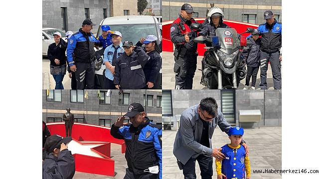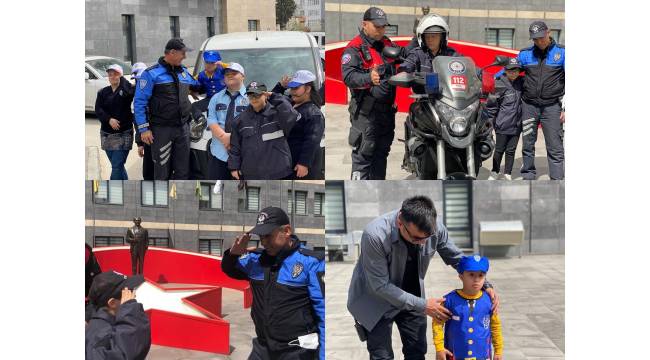 Down Sendromlu çocuklar Toplum Destekli Polislik Şube Müdürlüğünü ziyaret ettiler. Çocuklara polis kıyafetleri