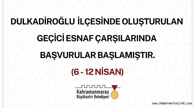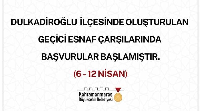 Büyükşehir Belediyesi, Dulkadiroğlu ilçesinde oluşturulan geçici esnaf çarşılarına başvuruların başladığını duyurdu.