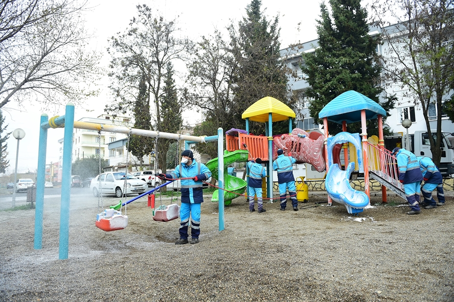 alanları, oyun gurupları da yıkanarak dezenfekte ediliyor. Dulkadiroğlu