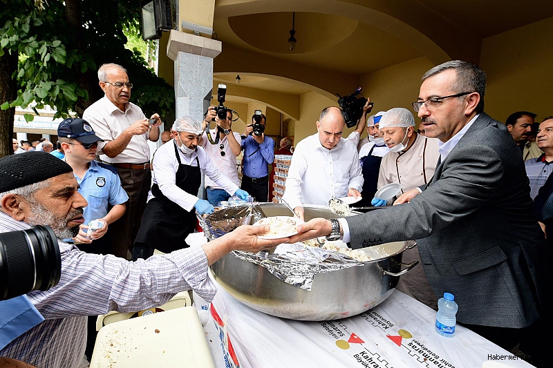 Ulucamii’de şehitler için okutulan mevlidin ardından Vali Özkan ve Başkan Güngör vatandaşlara etli pilav ve ayran ikram ettiler.