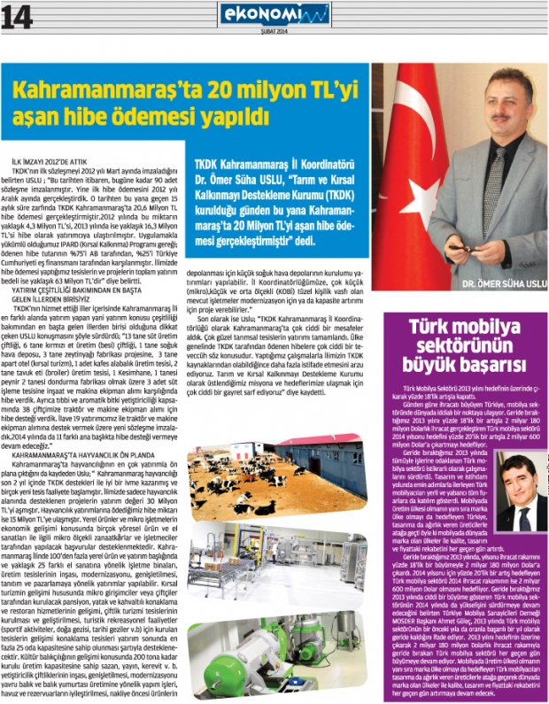 İlk sayısında Kahramanmaraş’ın ekonomisini ele alarak bölgeye hitap eden EKONOMİM gazetesi 20 ilde Kahramanmaraş’ın sesi oluyor.