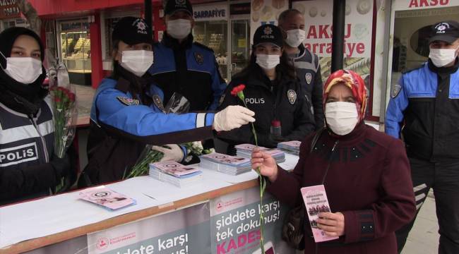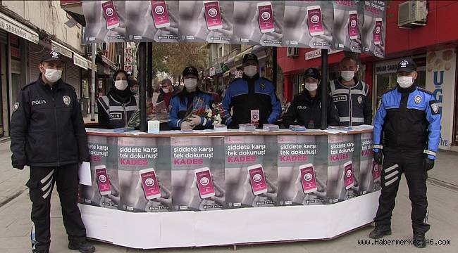 İçişleri Bakanlığınca kadınların korunmasına yönelik geliştirilen Kadın Destek Uygulaması'nın (KADES) tanıtımını yapan polis ekipleri, vatandaşlara karanfil verdi.