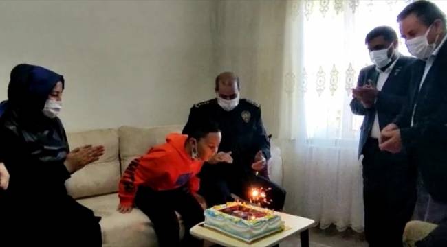 Doğum günü etkinliğine Türkiye Harp Malulü Gaziler, Şehit, Dul ve Yetimleri Derneği Kahramanmaraş Şube Başkanı Yunus Karaman ile katılan İl Emniyet Müdürü Salim Cebeloğlu, Eymen'e sürpriz yaptı.