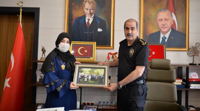 Şehit kızını ve ailesini makamında ağırlayan İl Emniyet Müdürü Salim Cebeloğlu, içerisinde düğün törenlerinde çekilen fotoğrafların yer aldığı albümü hediye ederek, emniyet teşkilatı olarak her zaman yanında olduklarını söyledi.