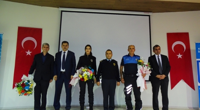 Daha sonra kürsüye İl Emniyet Müdürlüğü personellerinden Mustafa Çot ve Mehtap Solak ‘Gençlikte Genel Güvenlik ve Asayiş’ konusunda bilgilendirmede bulundular.