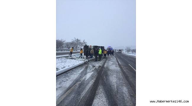 Kahramanmaraş'ta kar yağışı nedeniyle yoldan çıkan fabrika servisinin devrilmesi sonucu yaralanan 9 işçi hastaneye kaldırıldı.