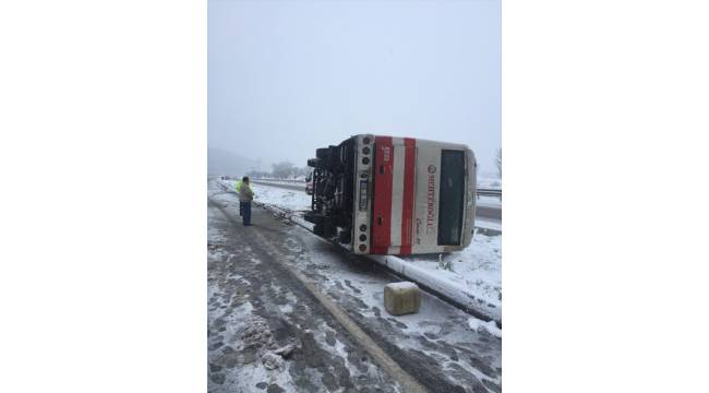 (AA) - Kahramanmaraş'ta kar yağışı nedeniyle yoldan çıkan fabrika servisinin devrilmesi sonucu yaralanan 9 işçi hastaneye kaldırıldı.