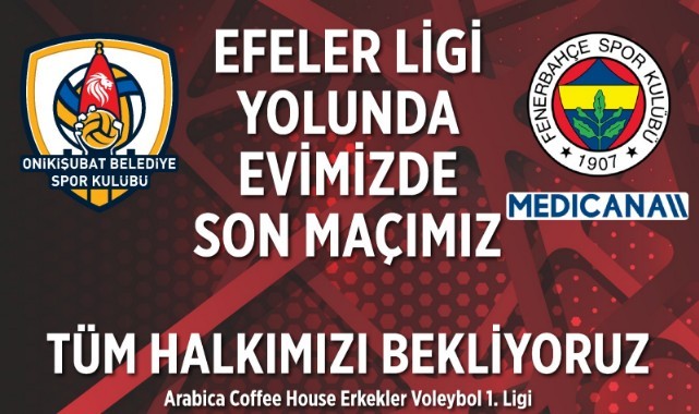 Sezon boyunca ortaya koyduğu mücadeleci oyun, azim ve takım ruhuyla dikkat çeken Onikişubat Belediye Spor Kulübü Erkek Voleybol Takımı, taraftarının desteğini arkasına alarak önemli bir galibiyet hedefliyor. Sahada ter döken Filenin Aslanları, sezonun evindeki son maçında Kahramanmaraşlı voleybolseverlerle birlikte büyük bir atmosfer oluşturmak istiyor.