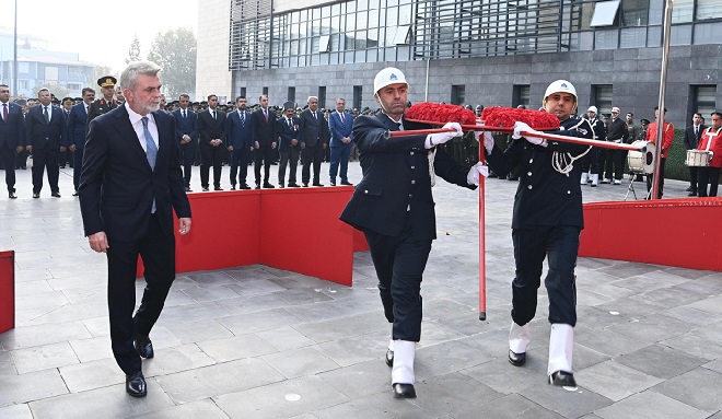 Anma programı, İl Emniyet Müdürlüğü önünde düzenlenen çelenk sunma töreniyle başladı. Törende; Vali Mükerrem Ünlüer, Garnizon Komutanı Tümgeneral Ahmet Gülmüş ve Büyükşehir Belediye Başkanı Fırat Görgel, Atatürk Anıtı’na çelenk sundu.