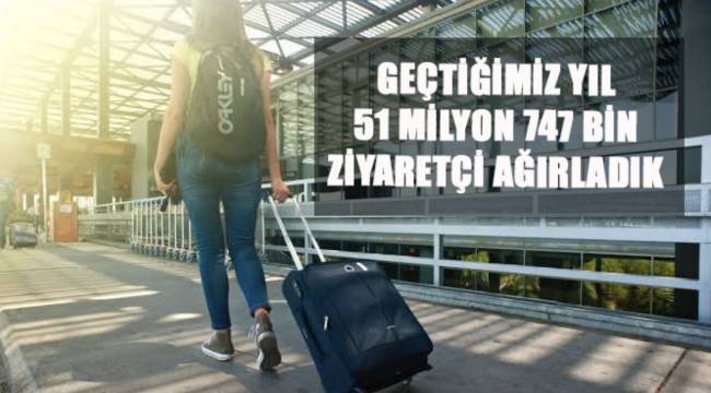 2019 yılında ülkemize gelen ziyaretçi sayısı 2018 yılına oranla yüzde 12,22 artış gösterirken, 7 milyon 413 bin887 kişi ile en çok ziyaretçinin Temmuz ayında geldiği görüldü.