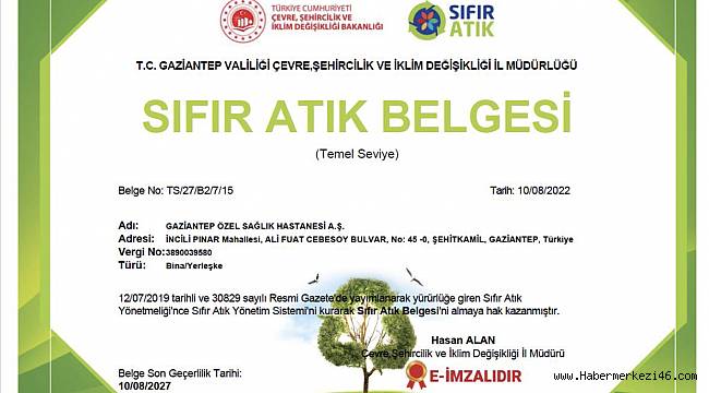 Çevre, Şehircilik ve İklim Değişikliği Bakanlığı’nca yürütülen “Sıfır Atık Projesi” çerçevesindeki çalışmaların sonucunda Sıfır Atık Belgesi aldıklarını belirten SANKO Üniversitesi Hastanesi Genel Müdürü Dr. Sermet Kileci,gelecek adına en büyük yatırımın, atıkların geri dönüştürülmesi olduğunu söyledi.