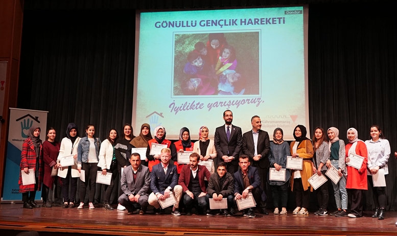 Kahramanmaraş Büyükşehir Belediyesi tarafından başlatılan Gönüllü Gençlik Hareketi katılımcılarına belgeleri takdim edildi. Necip Fazıl Kısakürek Kültür Merkezi’nde gerçekleştirilen programa AK Parti Kahramanmaraş Milletvekili Mehmet Cihat Sezal, Kahramanmaraş Valisi Vahdettin Özkan’ın Eşi Ruhan Özkan, AK Parti Genel Başkan Yardımcısı Mahir Ünal’ın Eşi Şube Özdin Ünal, Kahramanmaraş Büyükşehir Belediye Başkanı Hayrettin Güngör’ün eşi Leyla Güngör, AK Parti Kadın Kolları Başkanı Ayşe Cesur, Büyükşehir Belediyesi Genel Sekreter Yardımcısı Züver Çetinkaya, Sağlık ve Sosyal Hizmetler Dairesi Başkanı Ayşe Taşkıran ile çok sayıda öğrenci katıldı.