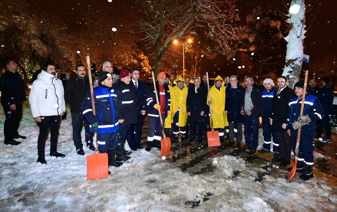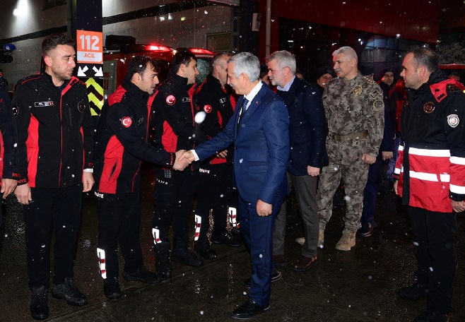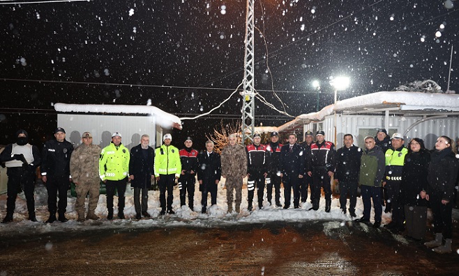 Yeni yıl gecesinde vatandaşların huzur ve güvenliği için görev yapan personelleri yalnız bırakmayan heyet, şehrin farklı noktalarında incelemeler gerçekleştirdi.
