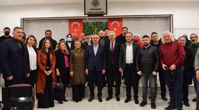 Büyükşehir Belediye Başkanı Hayrettin Güngör’ün sonraki durağı ise Kahramanmaraş Kafkas Kültür Derneği tarafından düzenlenen Buluşma Gecesi etkinliği oldu. Etkinlikte konuşan Başkan Güngör, “Ben Kafkas kültürüyle iç içe büyüdüm. Çok değerli kardeşlerim, arkadaşlarım oldu. Bugün de birlik olmanın mutluluğunu yaşıyoruz. Kahramanmaraş olarak birçok kültüre sahip ev sahipliği yapan bir şehir. Hemşehrilerimizin de kendi kültürlerini yaşaması ve yaşatmasını, bunu gelecek nesillere aktarmasını çok önemli görüyorum. Fındık’ta Çerkes Sürgünü Anıtını da bu sebeple açtık. Göksun’da inşa ettiğimiz Arslanbey Millet Konağı ve Bahçesi’nin ardından Milli Mücadele’mizin kahramanlarından Kafkas kökenli Arslan Bey’in konağını da restore ediyoruz. Rabbim birliğimizi daim etsin” diye konuştu.