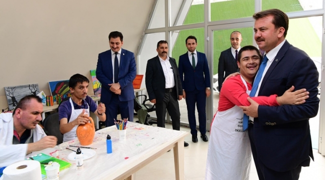 Kahramanmaraş Büyükşehir Belediyesi Engelliler Şube Müdürlüğü bünyesinde engellilere yönelik açılan Engelsiz Sanat Kurslarını ziyaret eden Başkan Erkoç, burada kursiyerlerle sohbet ederek onların çalışmalarını izledi.
