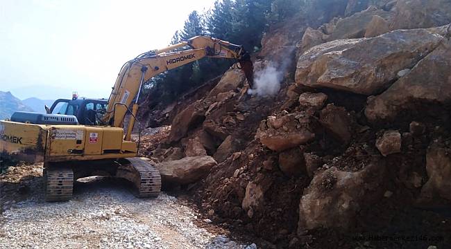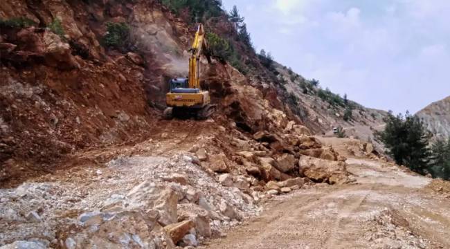 Geçtiğimiz günlerde yoğun yağışlar ve toprak kayması sebebiyle yola savrulan dev kaya kütleleri ekskavatör iş makinesi yardımıyla parçalanarak bölgeden kaldırılıyor. Hafriyat sevkiyatının devam ettiği yolun, heyelan temizlik çalışmalarının kısa süre içerisinde tamamlanması ve yeniden ulaşıma açılması hedefleniyor.