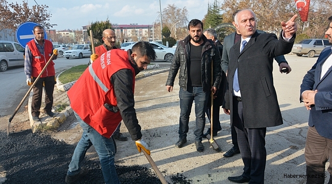 merkezinde yapılan doğalgaz sonrası açılan çukurların yama çalışmalarını da