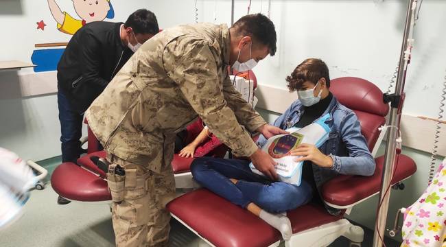 İl Jandarma Komutanlığı personelleri, KSÜ Tıp Fakültesi Hastanesi Çocuk Hemotoloji ve Onkoloji Servisinde yatan lösemili çocukları ziyaret ederek çeşitli hediyeler verdi. Ziyarette çocukların mutluluğu gözlerden kaçmadı.