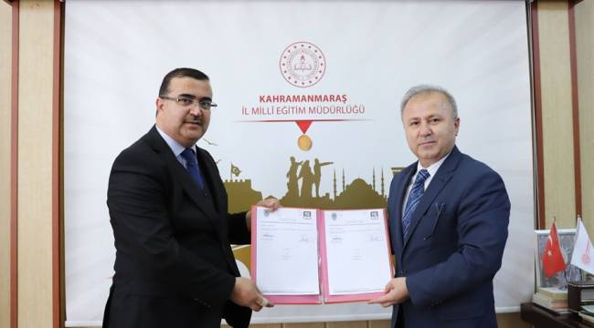 Kahramanmaraş İl Millî Eğitim Müdürlüğü'nde yapılan protokol imza törenine İl Millî Eğitim Müdürü Yusuf Kahraman ile kahramanmaraş 112 Acil Çağrı Merkezi Müdürü Akın Ozan katıldı.