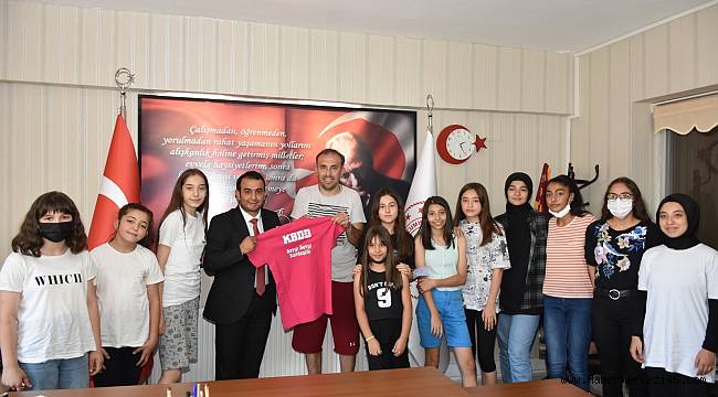 Pazarcık Gençlik ve Spor İl Müdürü Mustafa Dağlı’yı makamında ziyaret eden Kadın Basketbolu Danışma Derneği Kahramanmaraş Temsilcisi Basketbol Antrenörü Serdar Gökçe, “Basketbolda antrenörlük yaparak kız çocuklarımıza güven spor ortamında basketbol öğreten sağlıklı, güçlü ve özgüvenli olmalarını sağlayan alt yapı basketbol antrenörlerimize verdiğiniz ve vereceğiniz destekler için teşekkür ederim” dedi.