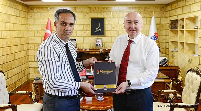 Rektör Prof. Dr. Alptekin Yasım’ı ziyaret eden Kahramanmaraş Ansiklopedisi Editörü Prof. Dr. İbrahim Solak, Rektör Yasım’a Kahramanmaraş Ansiklopedisi ve ansiklopedinin 6. cildi ile ilgili çalışmalara dair bilgiler verdi.