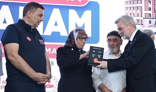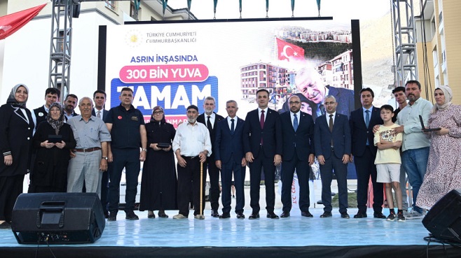 Deprem bölgesinde aşkla, şevkle ve sevdayla çalıştıklarını ifade eden Çevre, Şehircilik ve İklim Değişikliği Bakanı Murat Kurum, “Bugün Anka Kuşu gibi küllerimizden doğuyoruz. Sayın Cumhurbaşkanımızın teşrifleri ile 300 bininci yuvamızın anahtarlarını heyecanla ve coşkuyla teslim ediyoruz, karanlığın yerini tekrardan aydınlığa bırakıyoruz.