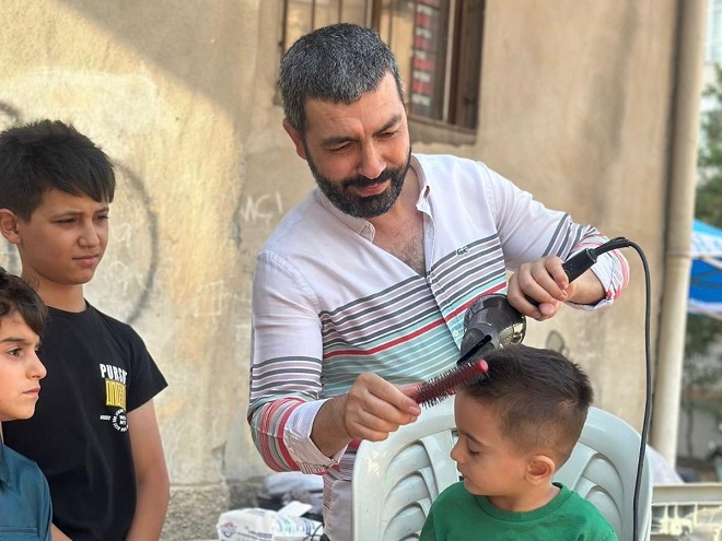 Tras bakımı, okul kıyafetleri, eğitim setleri, yazlık ve kışlık ihtiyaçlar gibi temel desteklerin yanı sıra yaşlılara ücretsiz bakım, ev tadilatı ve gıda yardımları gibi hizmetlerle gönüllere dokunan berber Ramazan Gök, berber makasıyla her gün yeniden umut inşa ediyor.