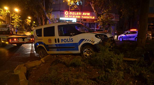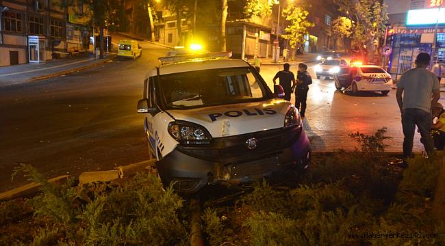 Kovalamaca esnasında ekip aracı, Şehit Muallim Hayrullah Caddesi'nde sürücü polis memurunun direksiyon hakimiyetini kaybetmesi sonucu kontrolden çıkarak refüje çarptı.
