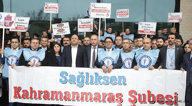 Sağlık-Sen Kahramanmaraş Şubesi üyeleri, Kahramanmaraş Sütçü İmam Üniversitesi (KSÜ) Sağlık Uygulama ve Araştırma Hastanesinde görevli sağlık teknikerinin darbedilmesini kınadı.