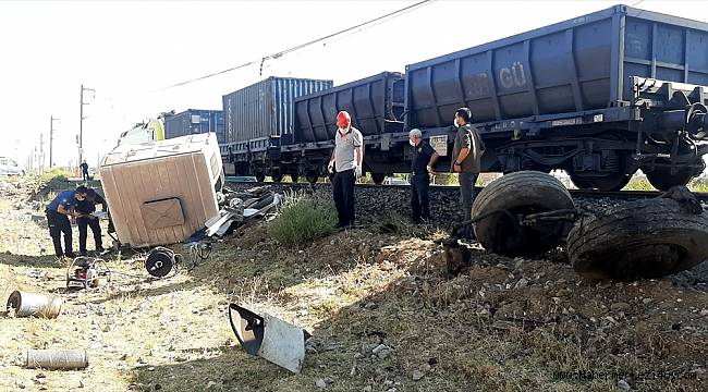 Kahramanmaraş'ın Türkoğlu ilçesinde, hemzemin geçitte trenin çarptığı kamyonun sürücüsü hayatını kaybetti.