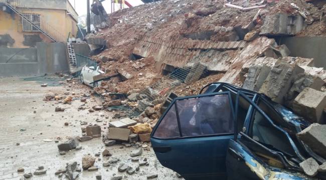 Kahramanmaraş'ta istinat duvarı çöktü, otomobiller hurdaya döndü