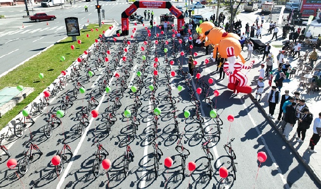 Etkinliğin en anlamlı anlarından biri ise depremde ebeveyn kaybı yaşayan yüz gence kırmızı bisikletlerin teslim edilmesi oldu. Bisikletlerini alan gençler şehir turu atarak yeniden doğuşun sembolik yolculuğunu tamamladı.