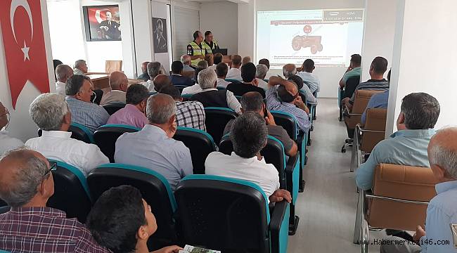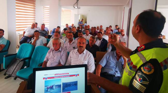 Kahramanmaraş’ta jandarma trafik timleri, traktör ve tarım araçlarının karıştığı kazaların önlenmesi kapsamında mahalle muhtarlarına yönelik bilgilendirmede bulundu.
