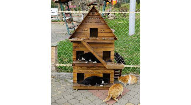 Sıcak ve soğuk havalarda kedilerin sığınabileceği bir alan olarak tasarlanan kulübeler dış hava koşullarına dayanıklı olduğu kadar estetik görünümüyle de dikkati çekiyor.