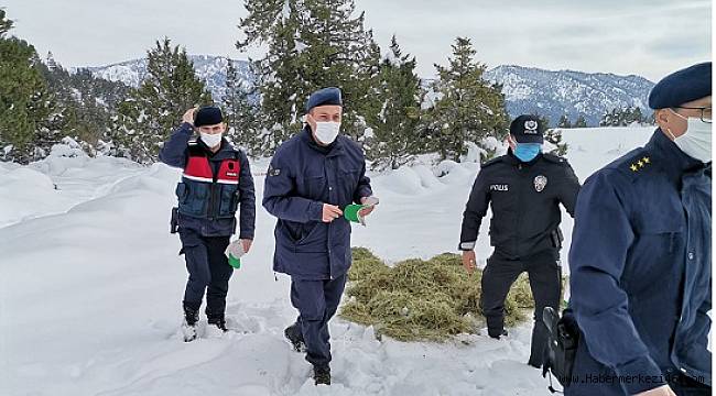 Kahramanmaraş/Andırın (SHA) - Kahramanmaraş’ta yoğun kar yağışının etkili olduğu bölgelerde yaşayan kızıl geyik ve yaban hayvanları için doğaya yem bırakıldı.
