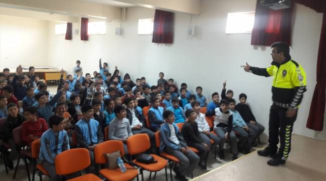 Kahramanmaraş'ta Trafik Dedektifleri Projesi kapsamında ilk ve ortaokul öğrencilerine trafik polisleri tarafından seminer verildi.