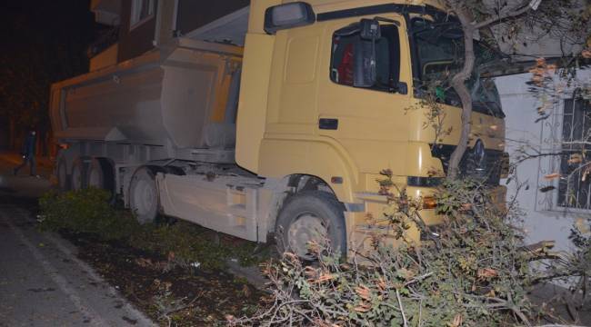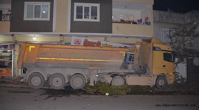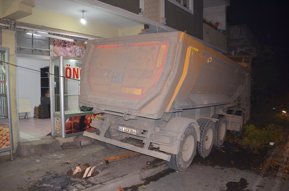 Merkez Dulkadiroğlu ilçesi Şeyh Şamil Mahallesi'nde iddiaya göre park halindeki 46 ACY 004 plakalı tır henüz bilinmeyen nedenle hareket etti ve bir binanın zemin katındaki iş yerlerine çarparak durabildi.