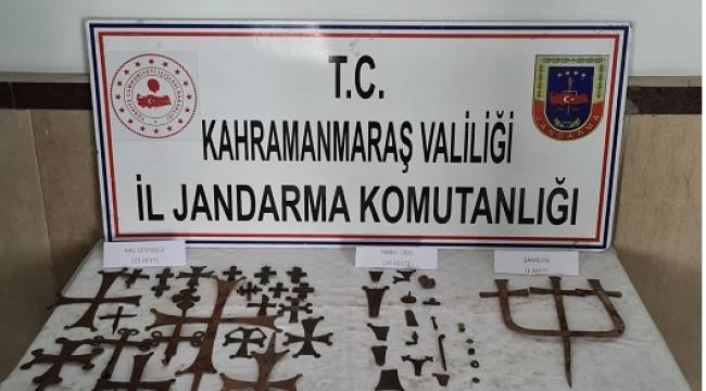 Edinilen bilgiye göre, Kayseri-Kahramanmaraş karayolu Tahirbey Mahallesi üzerinde seyir halinde olan bir araçta arama yapan jandarma ekipleri, ROMA döneme ait olduğu değerlendirilen 23 adet hac sembolü, 20 adet tarihi obje ve 1 adet şamdan olmak üzere toplam 44 adet tarihi eser ele geçirdi. Tarihi eserlere el koyan ekipler, araç içerisinde bulunan K.K (37) ile G.K (37) gözaltına aldı.