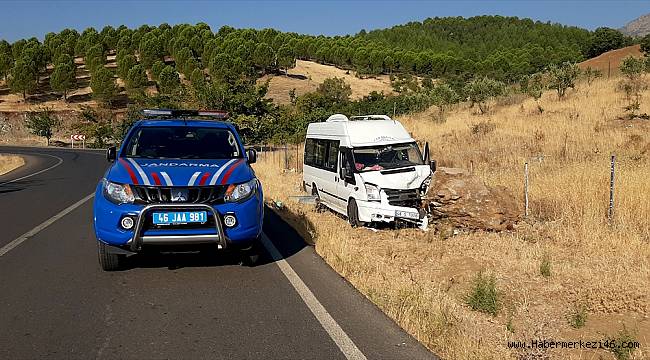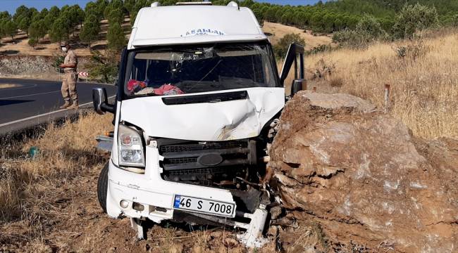 Alınan bilgiye göre, Mehmet Saygılı (42) idaresindeki 46 S 7008 plakalı minibüs Büyükimalı Mahallesi'nde yol kenarındaki kayaya çarptı.