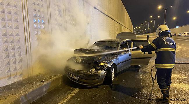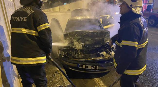 Yanan otomobil itfaiye ekiplerince söndürüldü.